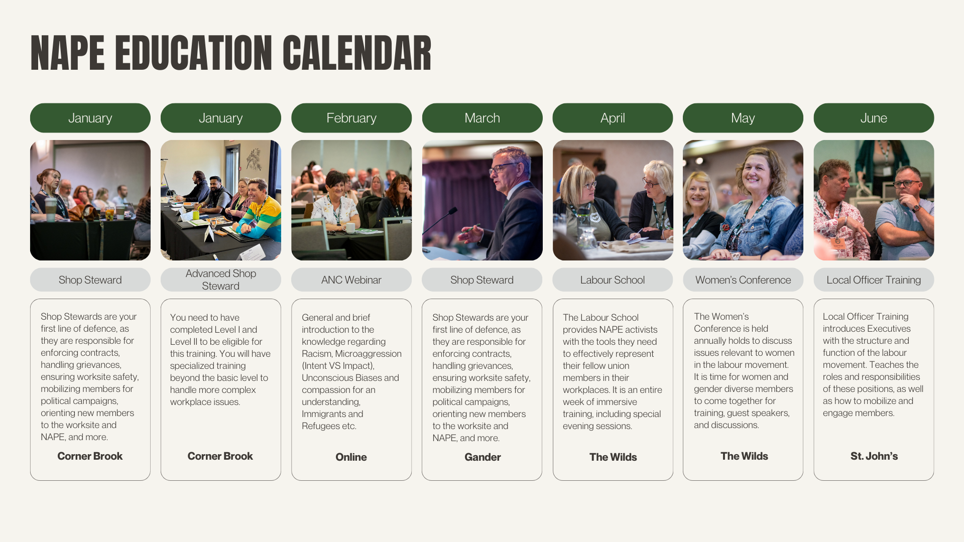 For Shop Steward Training, the call will go out all untrained officers. All eligible members will be sent the registration information, then it is a first-come-first-serve basis. For Advanced Training, it will depend upon who has completed the necessary Level I and II, the based on years of service.